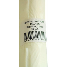 Atkritumu maisi , tilpums 35L, 55x68cm, 20 gab./rullī, HDPE, 12 mik, balti ( Gab. x 5 )