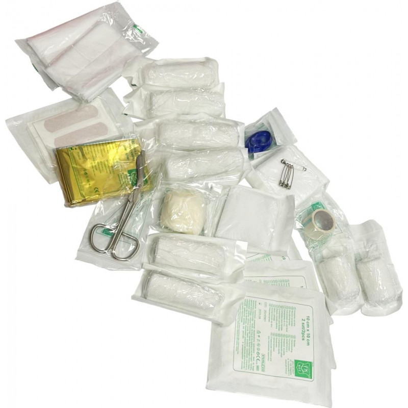 Pirmās palīdzības aptieciņas saturs un medicīnisko materiālu minimums:
