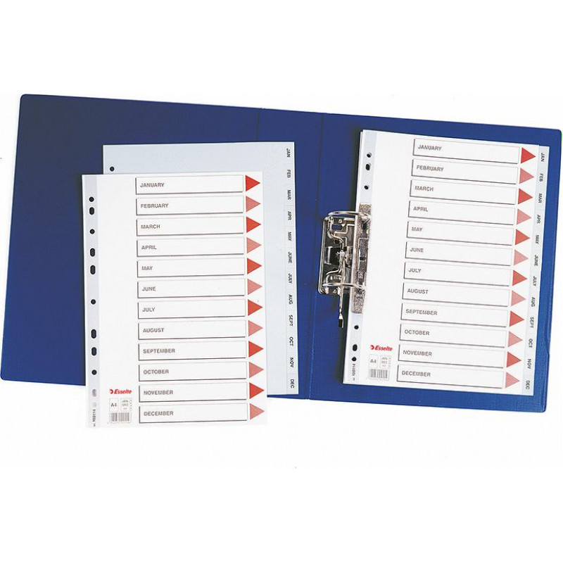 • A4 formāts • Izgatavots no plastikāta • Satura rādītājs no 130 g/m² bieza kartona • Izmērs: 225 x 297 mm • Pelēkā krāsā Jan.-Dec.