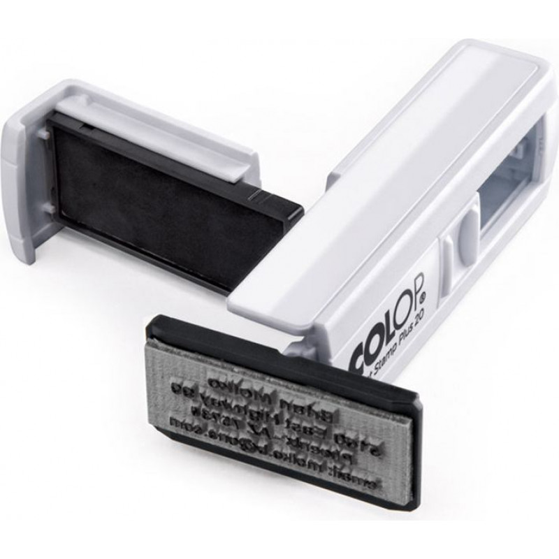 Zīmogs COLOP Pocket Stamp Plus 20NEW, balts korpuss, zils spilventiņš