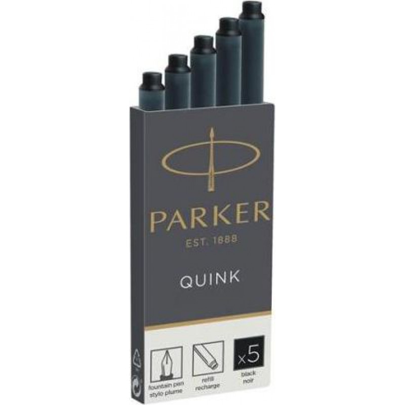 Tintes kapsulas PARKER pildspalvām QUINK melna tinte, 5 kapsulas/paciņā