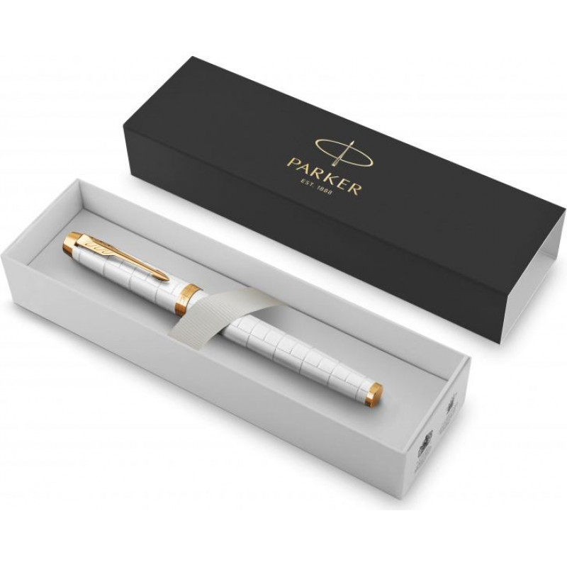 Jūsu iepirkumu grozs ir tukšs! • The good-looking and professional PARKER IM Premium rollerball pen is the ideal partner for unlimited potential. • The elegant tapered shape blends seamlessly with the iconic yet modern design, is a striking statement. • This PARKER pen is made of an elegant pearl lacquered body, engraved with an asymmetrical pattern and highlighted with a gold-colored finish. • From design to tip, every detail has been refined to ensure the writing experience of the PARKER brand for more than 130 years. • For use with QUINK cores. • The comfortable and ergonomic shape is combined with the highest PARKER craftsmanship to create a rich brand image. • Comes in a PARKER gift box with a black ink refill. • Fine pen tip. | ||||