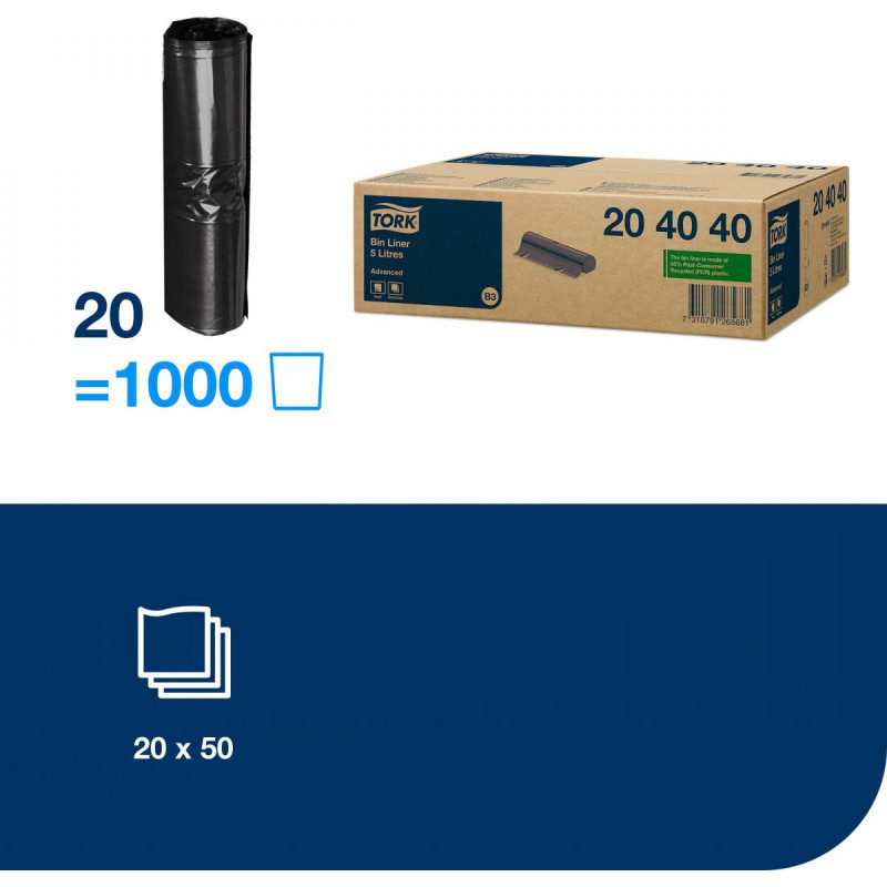 Atkritumu maisiņi TORK B3 tvertnei, 5L, 50 gab., melnā krāsā ( Gab. x 2 )
