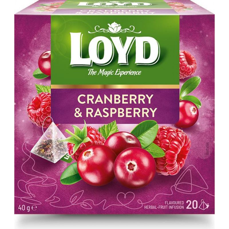 Augļu tēja LOYD Pyramids ar dzērveņu un aveņu garšu, 20x2 g ( Iepak. x 2 )