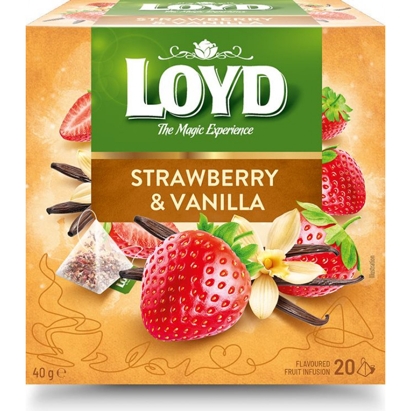 Augļu tēja LOYD Pyramids ar zemeņu un vaniļas garšu, 20x2 g ( Iepak. x 2 )