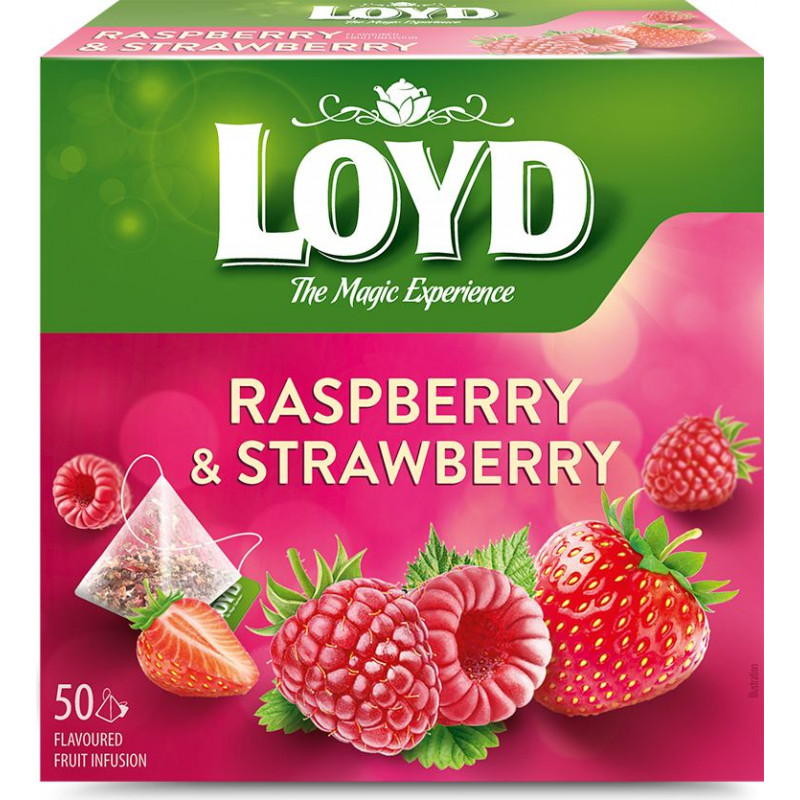 Augļu tēja LOYD Pyramids ar aveņu un zemeņu garšu, 50x2 g