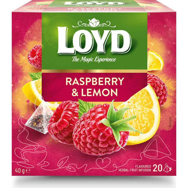 Augļu tēja LOYD Pyramids ar aveņu un citronu garšu, 20x2 g ( Iepak. x 2 )