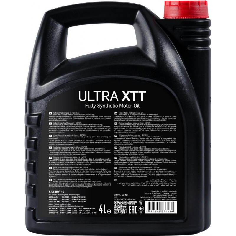 CHEMPIOIL Motoreļļa Ultra XTT 5W-40, 4L
