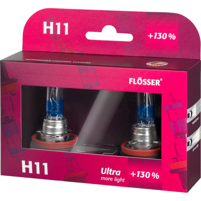 Flosser Autospuldzes H11 12V 55W PGJ19-2 Ultra Plus + 130%, 2gab.
