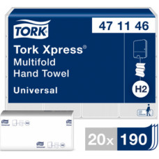 Roku dvieļi TORK Universal Xpress Multifold, 2 sl., 190 salvetes, 23.4 x 21.3 cm, baltā krāsā ar lapiņām ( Gab. x 20 )